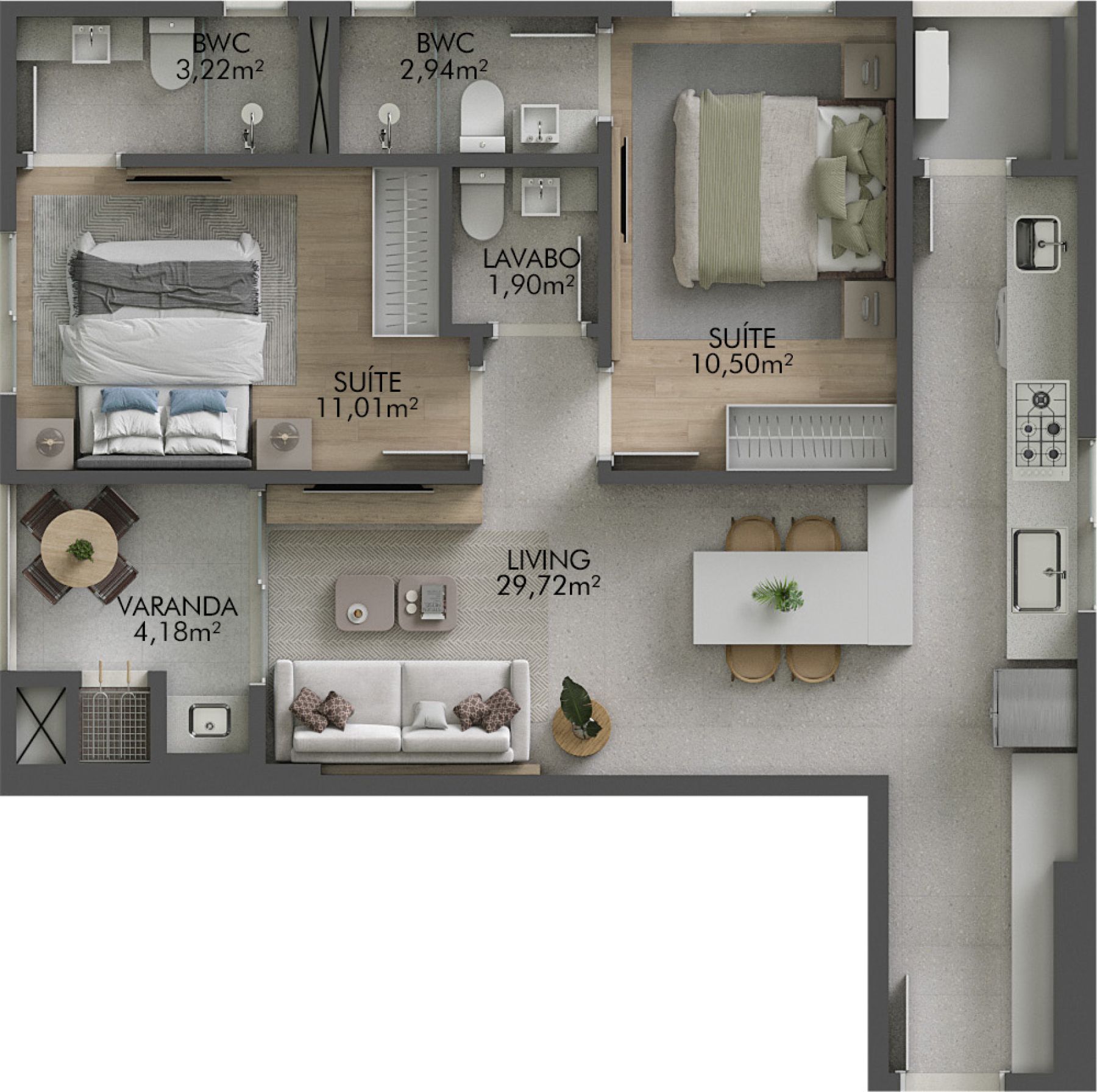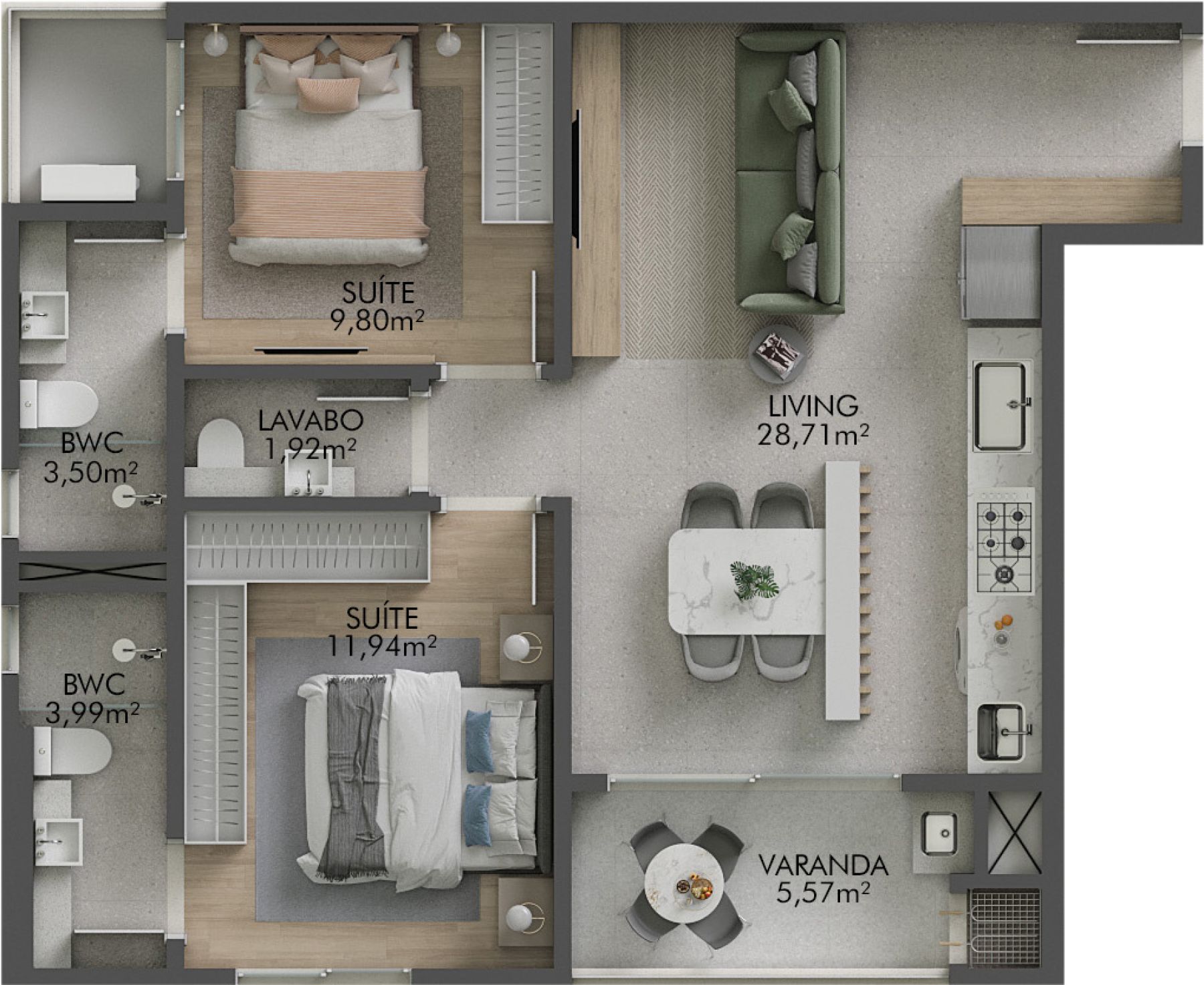Imagine acordar com o sol entrando suavemente pela janela. A luz natural invade seu apartamento, refletindo não só os ambientes bem projetados, mas na sensação de estar exatamente onde deveria estar.